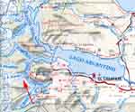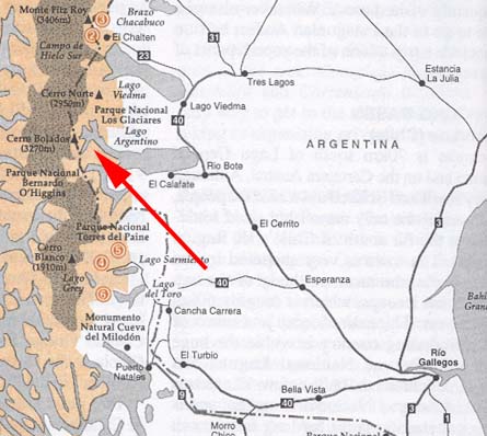 To help you get a feel for the geography, the map on the left will show you where Lago Argentino is located relative to the rest of Patagonia, and the map on the right will show where the glacier is located.