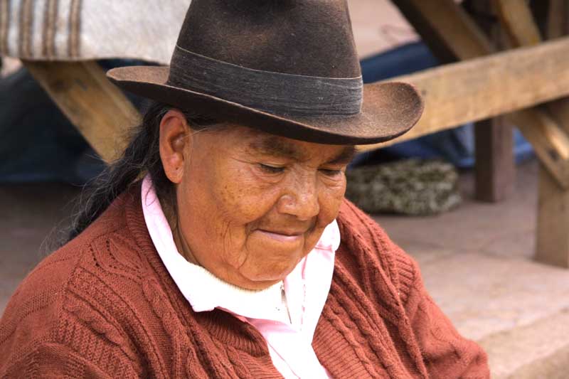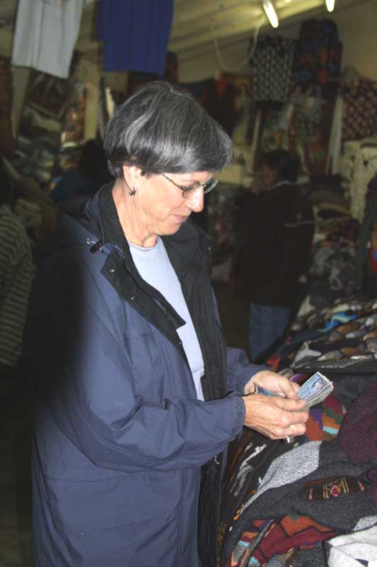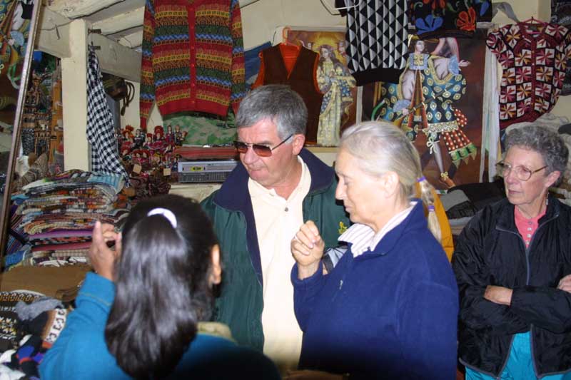 After leaving the site, we went to a nearby store which specialized in Alpaca and Vicuña products. Manuel looks fetching when he tries on a Vicuña hat...