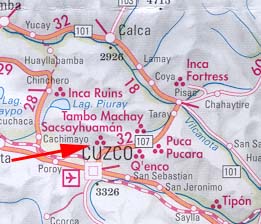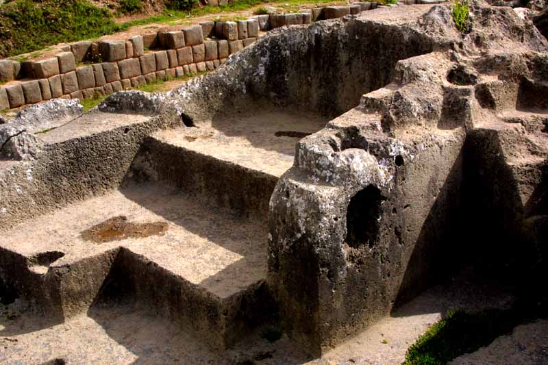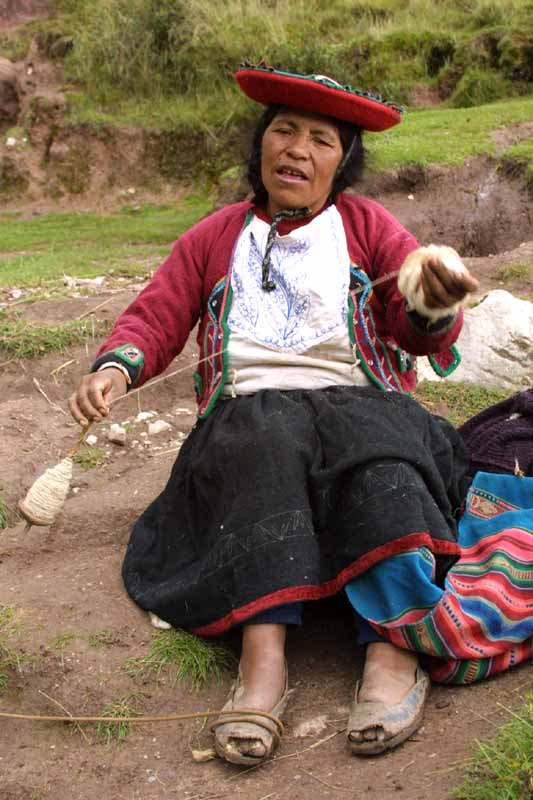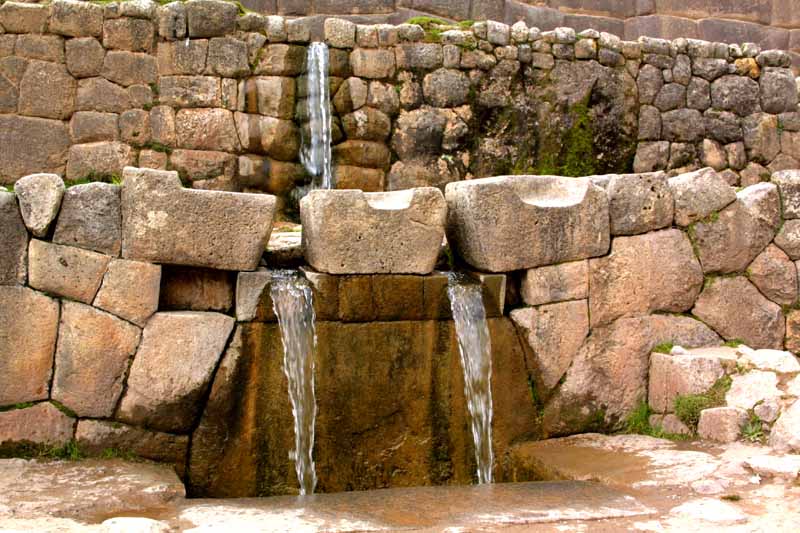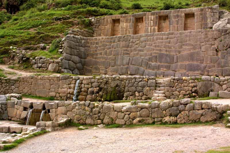 Tambo Machay is not far from Qenko. An interesting thing about this site is the flow of water. The source of the water is underground somewhere -- there is no surface water visable. There was a woman spinning yarn in front of the site.