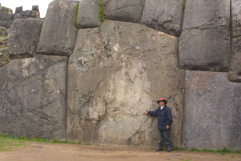 The first site we went to is considered an important one: Saqsaywaman. While not as large as Machu Picchu, it is still a large site. Some of the stones are huge. To see how huge, look at the stones that guide Manuel Valazco Serrano and that Erika and Alex are standing by.
