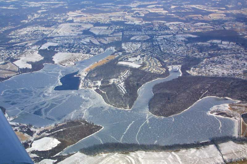 The pictures start out over the Delaware River looking south over the Tacony bridge, then on to the house. From there we flew out to Lancaster for lunch and you can see what short final for runway 31 at KLNS and then the terminal and restaurant look like. Coming back we passed over Marsh Creek State Park, then back over the Delaware looking north towards Burlington, and finally short final for 26 at South Jersey Regional.