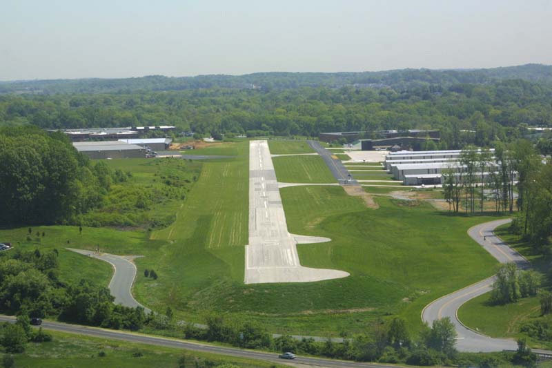 On the way back home from Lancaster, I had a nice view of Philadelphia again, then of the Delaware River looking towards Burlington. Next I got a picture of the Aegis bridge on Rt. 537 in Moorestown, a shot of my own shadow, and finally the approach to runway 8 at South Jersey Regional.