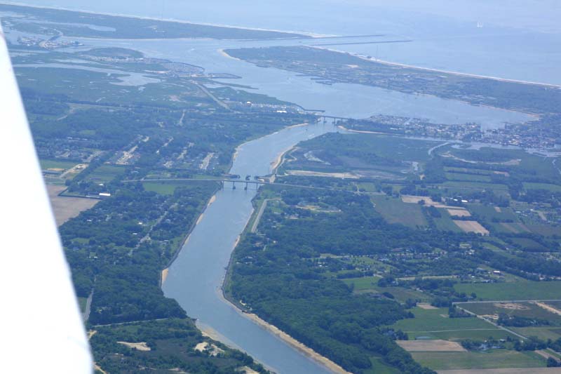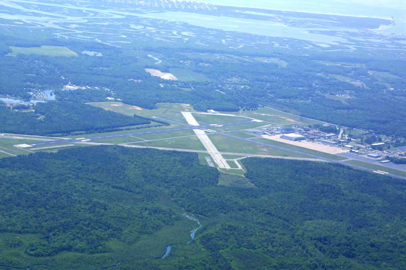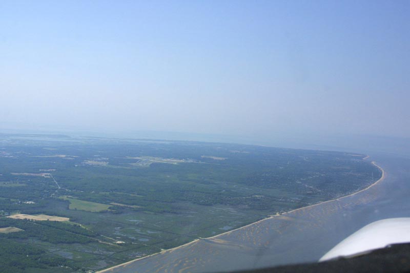 I need 50 pilot in command (PIC) crosscountry hours (flights greater than 50 nautical miles) for my instrument rating. Since Wildwood/Cape May Airport (WWD) is 54 miles away, it's a convenient run to build up hours. Here's what Cape May looks like as you fly along the west side of it, and then round the cape. There is, of course, the obligatory photo of the airport. The last two pictures are of my office, with the GPS showing that I'm flying near where Cape May juts out.