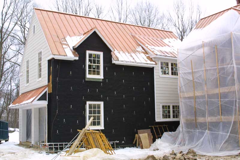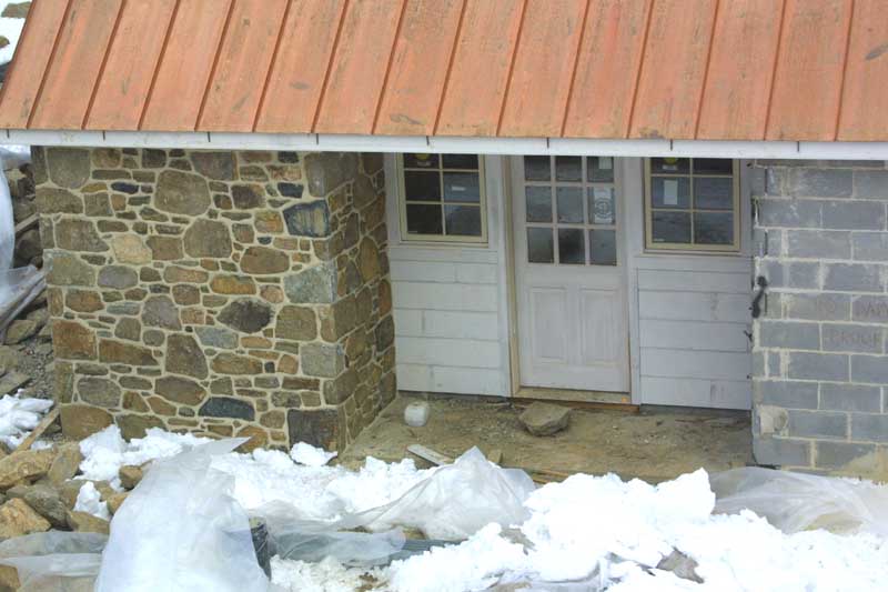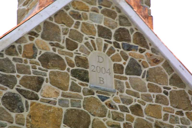 There's just a little more stone and siding work to be done, and the date stone is up! Can anyone find the mistake on the outbuilding (and it's not that they fogot to complete the stone work!)?