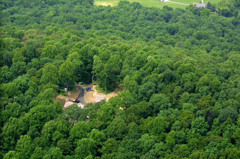 I had my first lesson today in the R22 helicopter. I had asked my CFI and partner in the heli if we could fly over the house so I could grab a picture or two. He agreed and took the controls for a bit so I could shoot. The first picture is interesting in that it shows how dense the woods are. From a couple miles out I could see nothing but what looked like a dent in the trees. This picture was taken maybe a half mile out.
