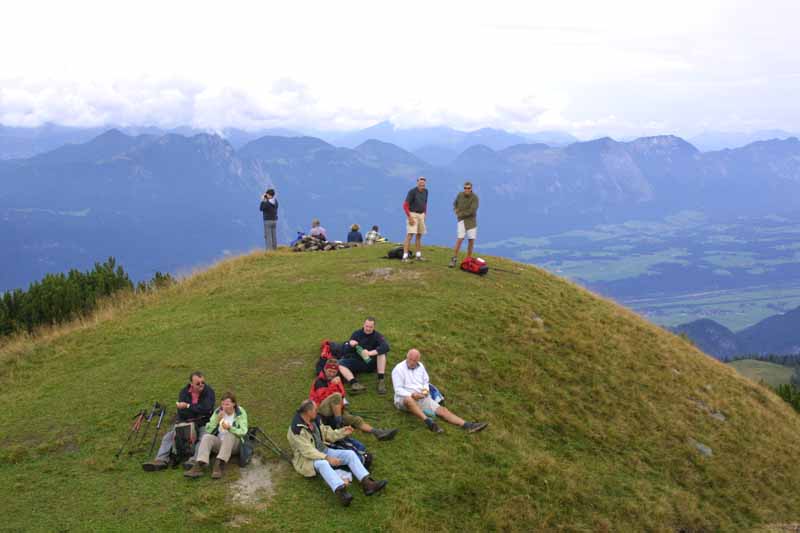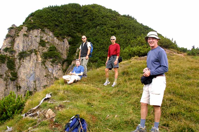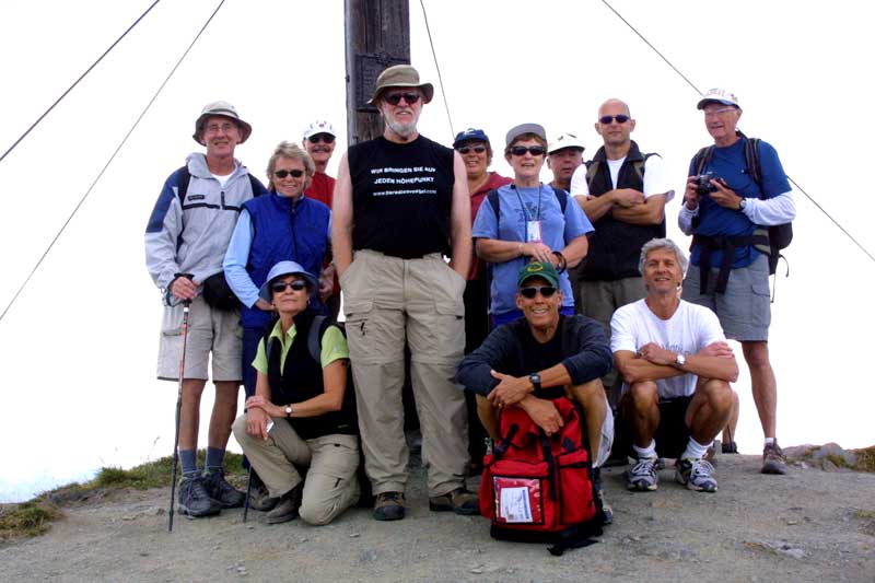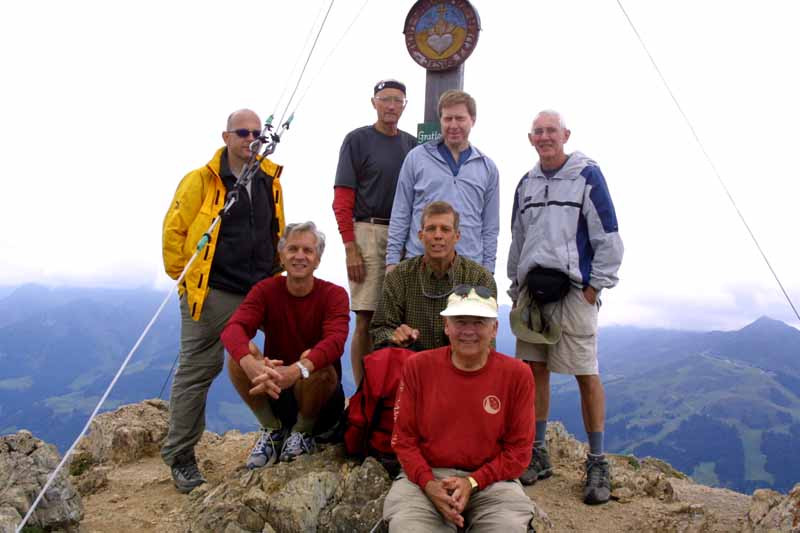 On the 13th, we climbed to the top of the Gratlspitz which can be seen from my balcony. This was a fairly hard hike and we did something in excess of 3,500 feet of ascent to the 1898 meter peak. We referred to ourselves as the Magnificent Seven for having succeeded, and used the code word M7. Sadly, Bill's wife decoded this immediately, and we changed to a new code word on a later hike.