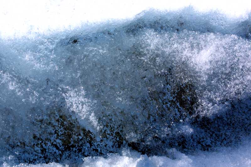 There were numerous small streams which were caused by melting. At night they would partially freeze, so there was a layer of ice over them, strong enough to walk on. In the pictures below, there is running water below the ice.