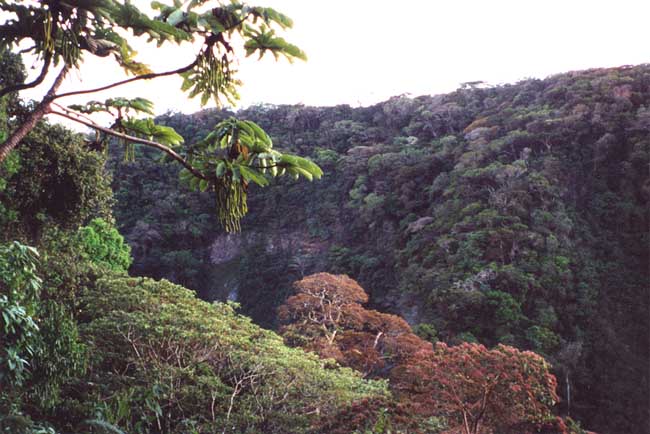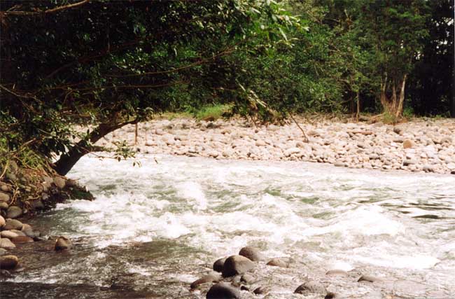 We were supposed to hike down from Monte Verde to El Castillo on Lake Arenal. A short way down, Carlos and I ran into horse drivers who told us that the river crossings on the way down were impassible due to heavy rains. So instead of a 4 hour, 7 mile hike, we had a 7 hour, 12 mile hike with about 3000 feet of climb, ending up at Rio Chiquito. The views on the way down, however, were sometimes spectacular. The information turned out to be totally false.