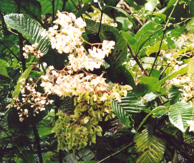 Typical of lowland rain forest, the area abounds with plants. The second plant from the left is one of many medicinal plants -- in this case a tea is made from it which is used by the Bri Bri to treat snake bites. The plants also have defensive mechanisms -- woe to the hiker who grabs this tree to steady himself.
