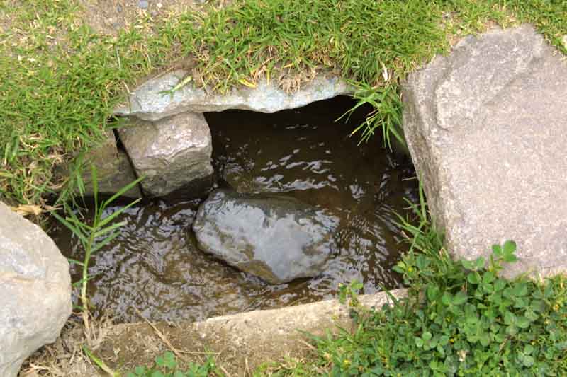 Tambo Machay is not far from Qenko. An interesting thing about this site is the flow of water. The source of the water is underground somewhere -- there is no surface water visable. There was a woman spinning yarn in front of the site.