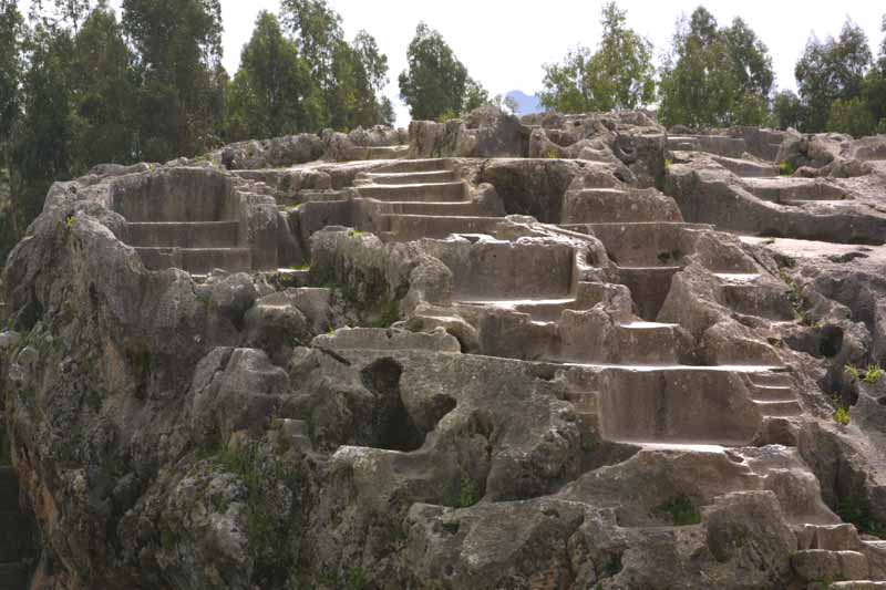 An interesting feature of this, and other Inca sites, is the system of aquaducts leading water everywhere. The aquaduct seen in the close-up comes down from the top, just to the right of the stairs.