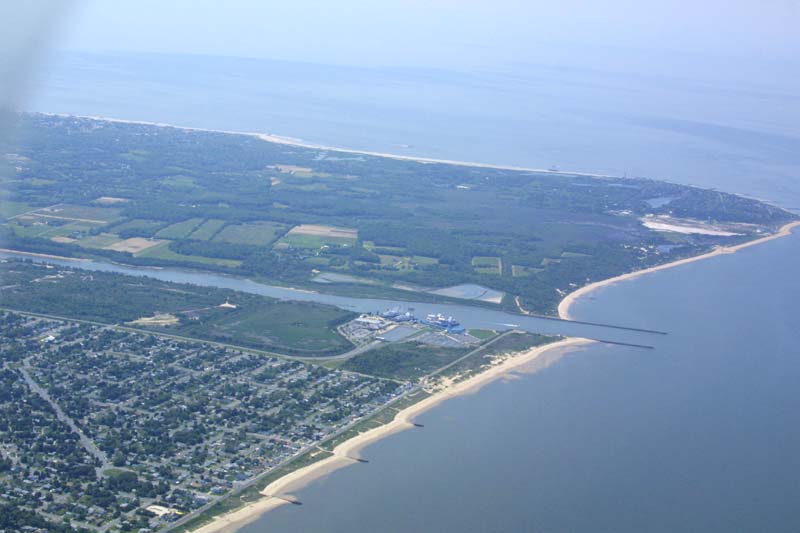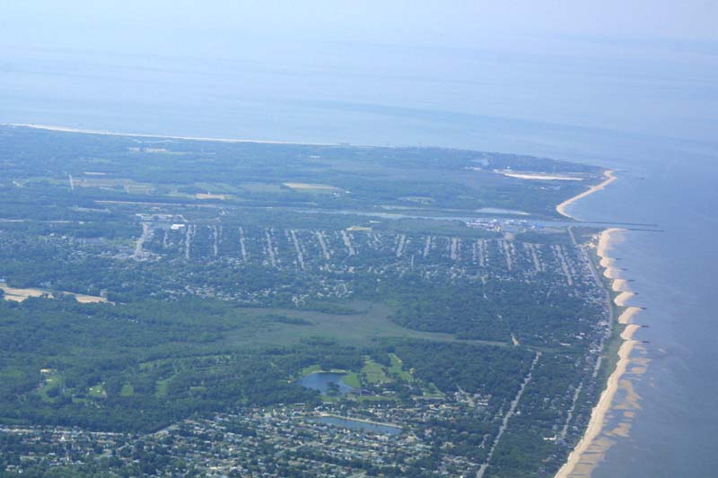 I need 50 pilot in command (PIC) crosscountry hours (flights greater than 50 nautical miles) for my instrument rating. Since Wildwood/Cape May Airport (WWD) is 54 miles away, it's a convenient run to build up hours. Here's what Cape May looks like as you fly along the west side of it, and then round the cape. There is, of course, the obligatory photo of the airport. The last two pictures are of my office, with the GPS showing that I'm flying near where Cape May juts out.