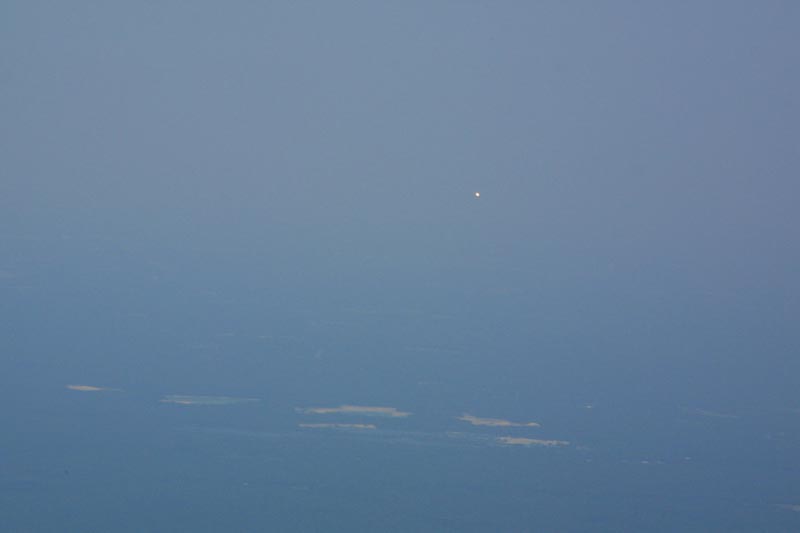 on one of the buildings which shines when the sun is right. The reflection made it through the haze, even if
