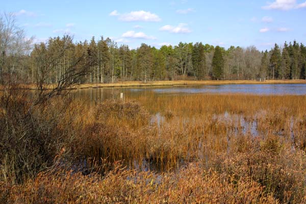 It was a great day, sunny, little wind, temperatures in the forties. We started out from Quaker Bridge along the Batona trail until we came to the stream coming out from Penn Swamp. We bushwhacked to the stream and followed it eastward along the northern bank. At the bridge we crossed, and bushwhacked up the southern bank as far as we could. We then went to Penn Swamp pond. Here's what we saw...