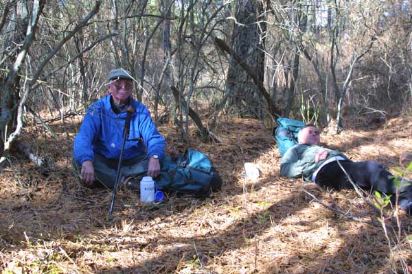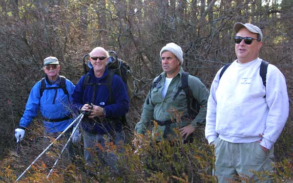About 1:00 pm we made it through the last of the swamp and had lunch. Here's Joe, Jack, Dennis and Craig.