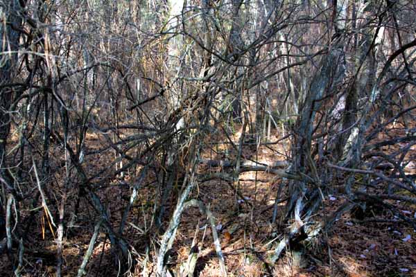 We wanted to see whether there was any way to get around the back side of the pond and then go to the northern edge of the pond. At first the way was a fairly easy bushwhack, and then it became thicker with gobs of catbrier. We were forced, because of how thick it was, and by deep water, to go southwest before we could start going north. The pictures below show the kinds of savanna we had to cross, and the final picture shows the kind of thick brush we bushwhacked through.