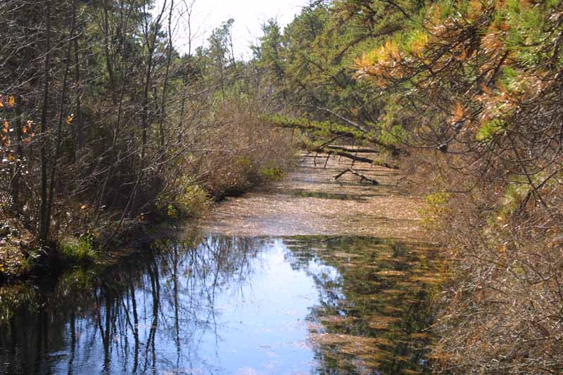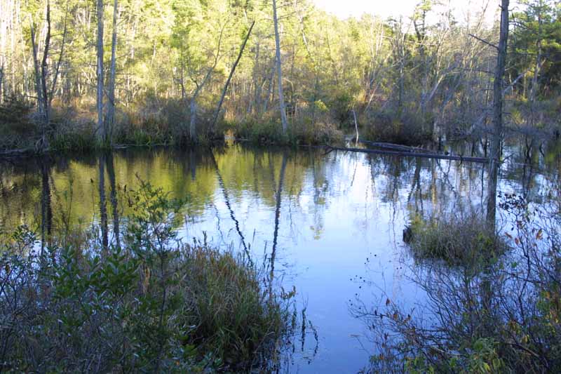 Finally we reached the Wading River, and were rewarded with some nice views, including another beaver dam. All in all it was a splendid day in spite of cat brier and wet feet!