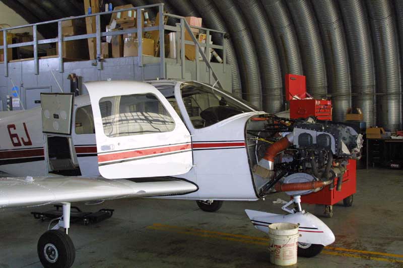 George and I negotiated a deal, and inked a contract of sale. One of the stipulations was that I would pay for an annual inspection (an inspection required yearly by the FAA -- in this case several months before it was required). George flew the Archer to Performance Aviation at nearby Flying W airport (N14) where the annual was performed. This is what the airplane looked like while it was all apart for the annual.