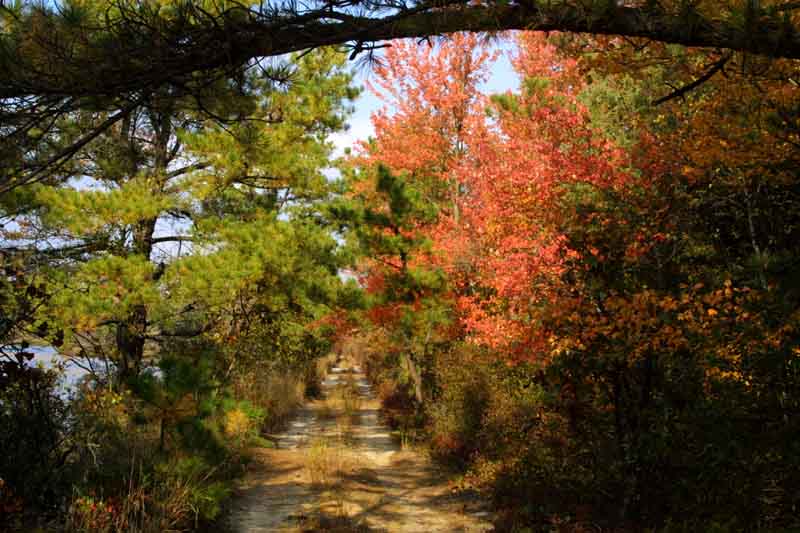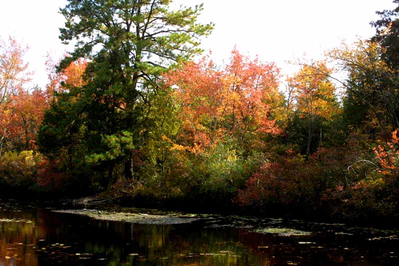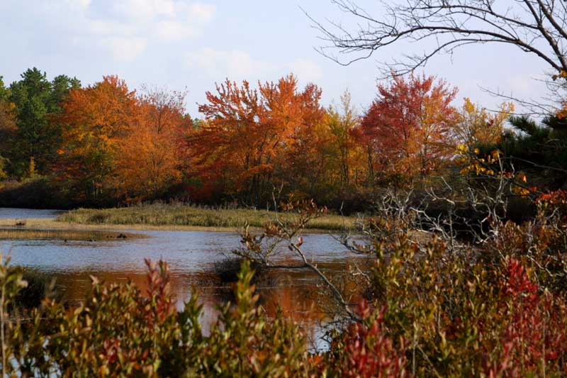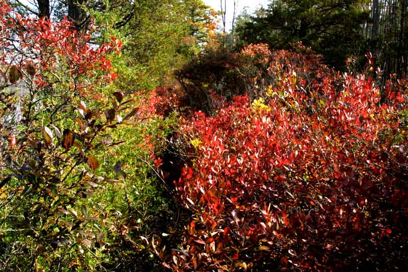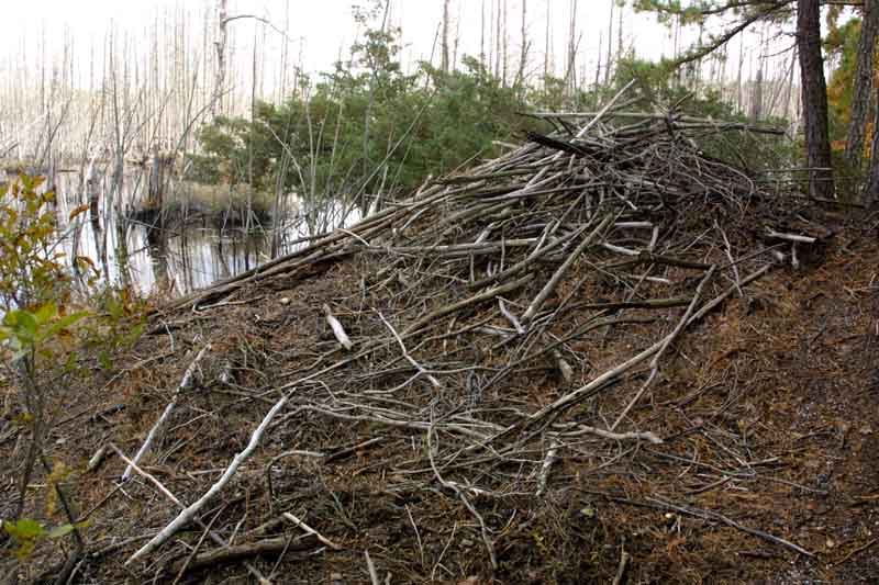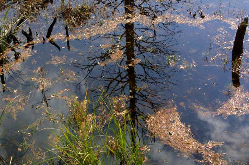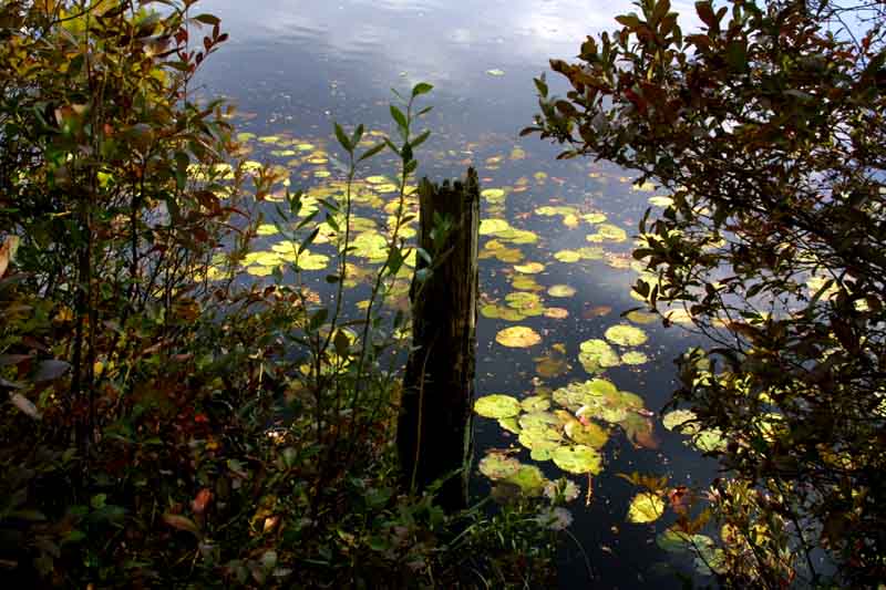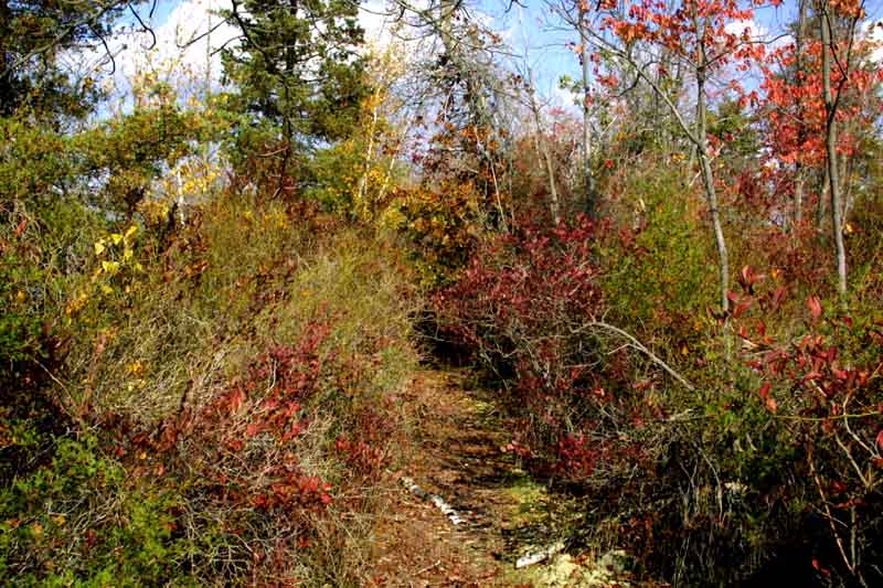My first hike took me in to the southeast end of the main bogs. The dikes used to be wide enough to drive a dump truck on, but have thickened to the point where some are impassable, and many look like the two below. The abandoned beaver dam is at the very south end of the main bogs.