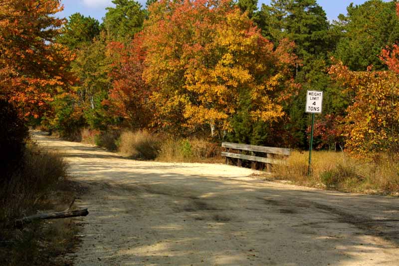 My trusty steed appears below. There are a number of ruined buildings at Friendship. The bogs were abandoned when they were added to Wharton Sate Forest in the 50's, and the buildings were vacated sometime in the 60's. The bridge is over the Featherbed Branch which is one of two streams which feed the bogs (the other is the Tulpehocken Creek).