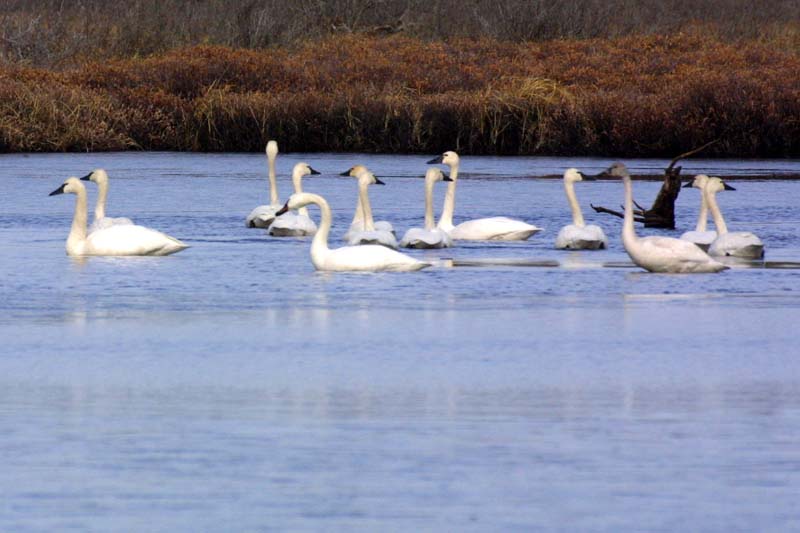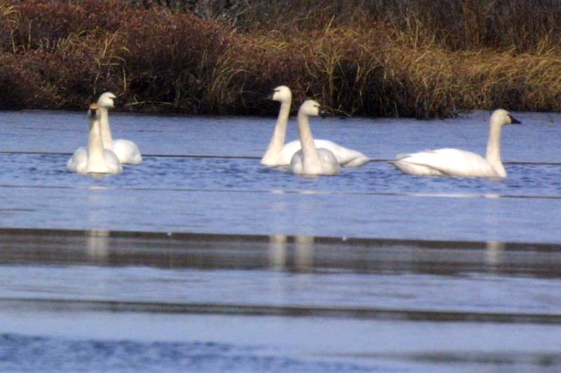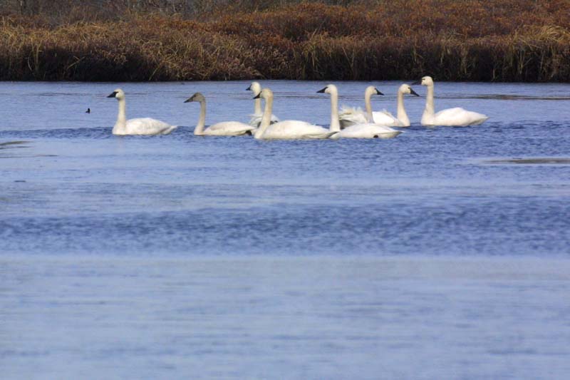 Every year the tundra swans migrate here from the sub-arctic north of Hudsons Bay in Canada. Their principal food is a weed called redroot which flurishes in cranberry bogs. There are a few bogs where they like to hang out -- among others, Whitesbog and here at Friendship where they seem to like the southern-most reservoir.